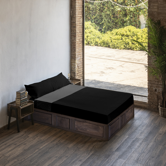 JUEGO DE SÁBANAS CON ALMOHADA Y BAJERA ESTAMPADAS 100% ALGODÓN MODELO HARRY POTTER NEGRO PARA CAMA DE 105.
